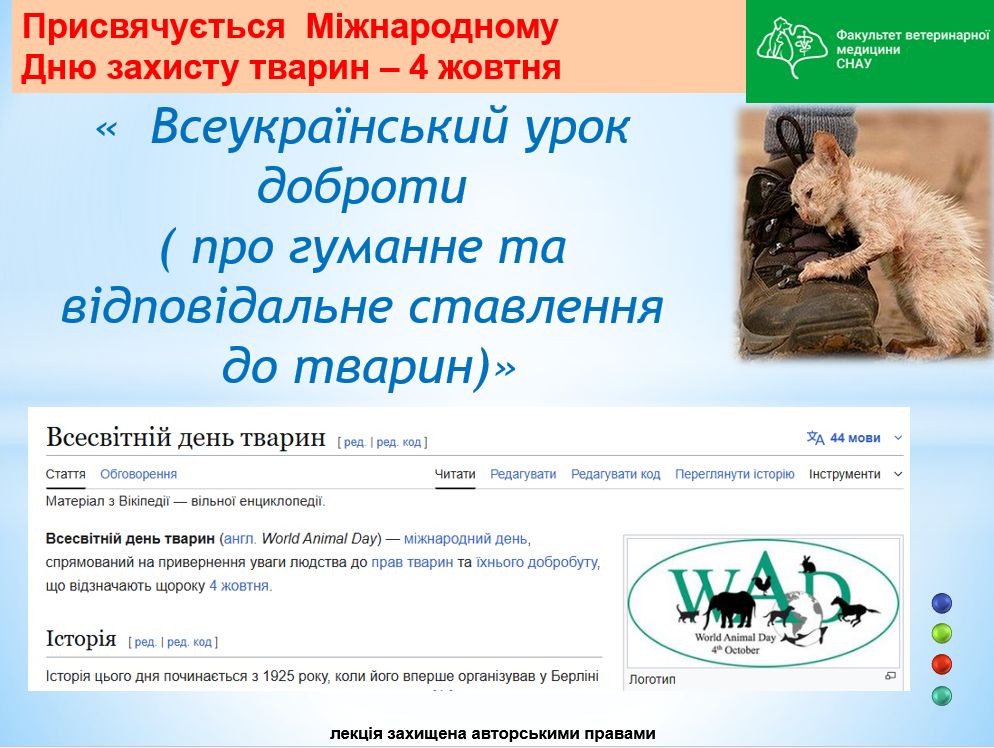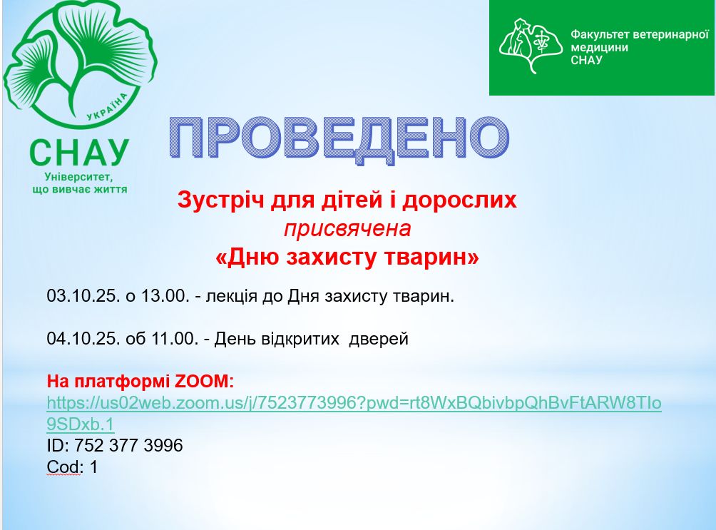 03.10.25. на факультеті ветеринарної медицини Сумського НАУ відбулася онлайн зустріч, присвячена міжнародному Дню захисту тварин.