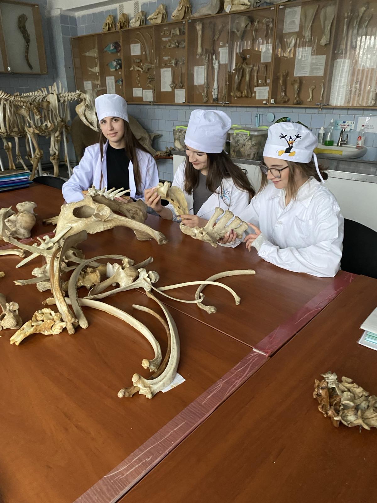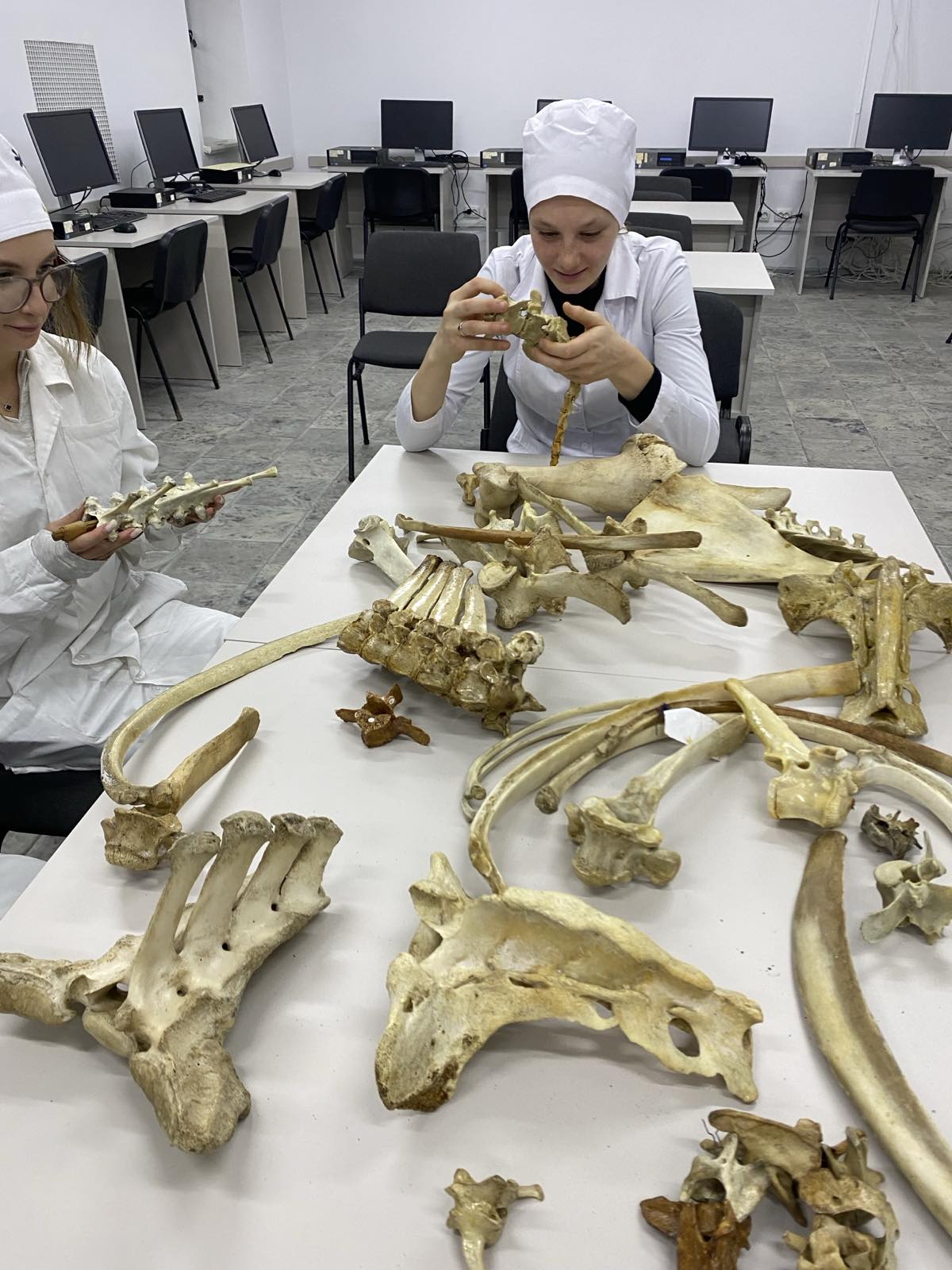 Практичні заняття були спрямовані на закріплення теоретичних знань з теми «Остеологія» — науки про кістки. У процесі відпрацювання студенти досліджували будову кісток осьового скелету тварин, працюючи з сухими анатомічними препаратами та скелетами різних видів.