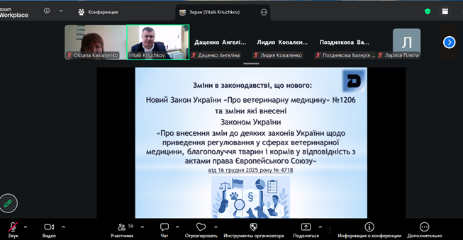 Під час лекції було висвітлено ключові аспекти гармонізації національного законодавства з вимогами Європейського Союзу, окреслено основні новації, запроваджені внаслідок набрання чинності новим законом, а також їх практичне значення для функціонування галузі ветеринарної медицини та забезпечення благополуччя тварин. Особливу увагу приділено змінам у підходах до державного контролю, простежуваності, відповідальності операторів ринку та впровадженню європейських стандартів безпечності.