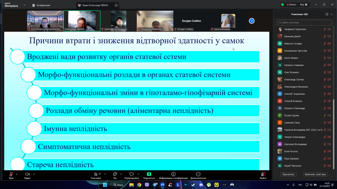 Професор Чекан акцентував увагу на питаннях репродуктивного здоров’я самок і самців, впливу умов утримання на фізіологічний стан тварин і можливостях підвищення продуктивності та ефективності розведення у господарствах різних типів.