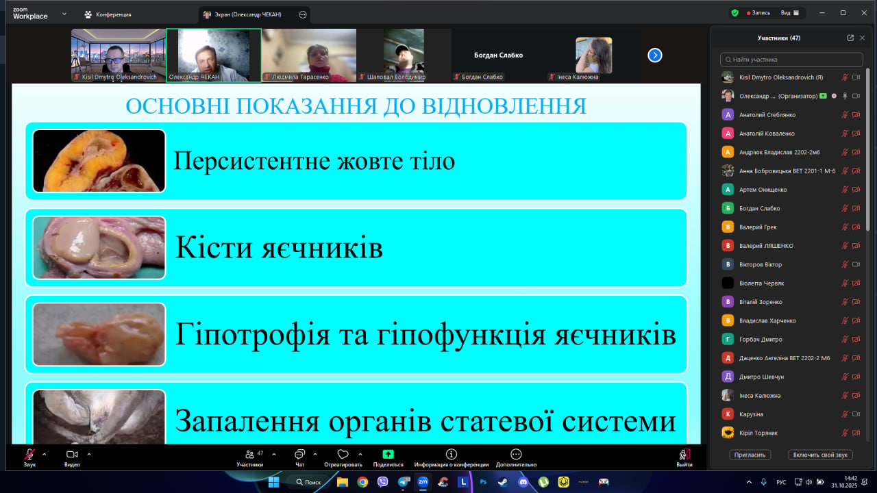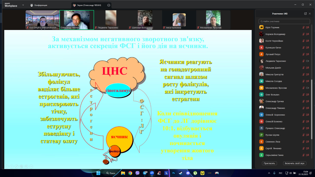 Під час лекції було детально розглянуто сучасні підходи до регулювання відтворної функції у тварин, зокрема методи гормональної стимуляції, синхронізації статевих циклів та впровадження біотехнологічних рішень у тваринництві.