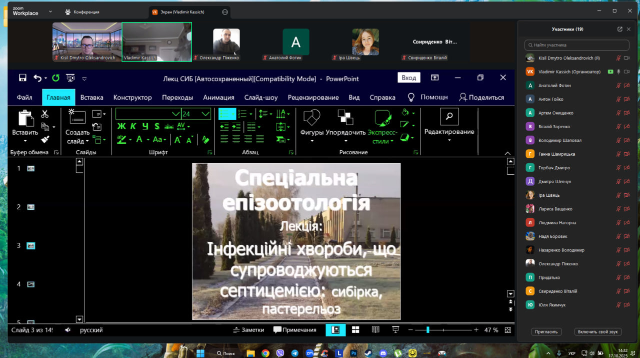 Під час лекції професор висвітлив актуальні питання діагностики, профілактики та боротьби з небезпечними інфекційними захворюваннями тварин, які супроводжуються септицемією.