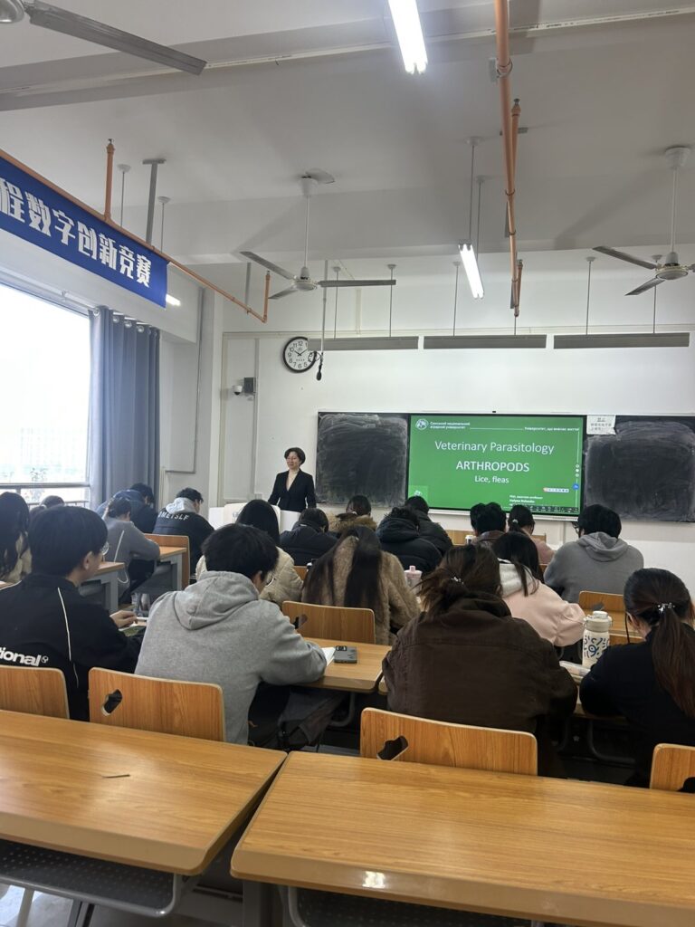 В рамках співпраці з Хенаньським інститутом науки і технологій делегація викладачів Сумського національного аграрного університету продовжує обмін досвідом у сфері використання сучасних освітніх технологій. 14 листопада доцент Галина Ребенко провела відкрите заняття на тему «Arthropods: lice and fleas», демонструючи інтерактивні методи навчання, які сприяють більшій залученості студентів до процесу засвоєння матеріалу англійською мовою та підвищенню ефективності навчання