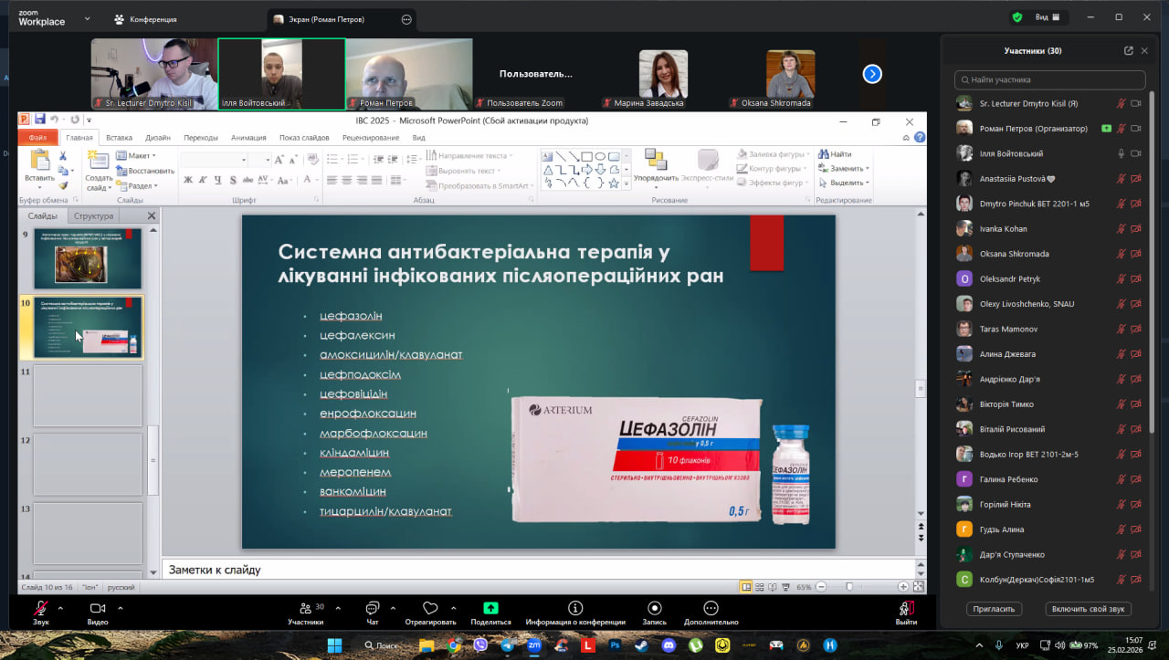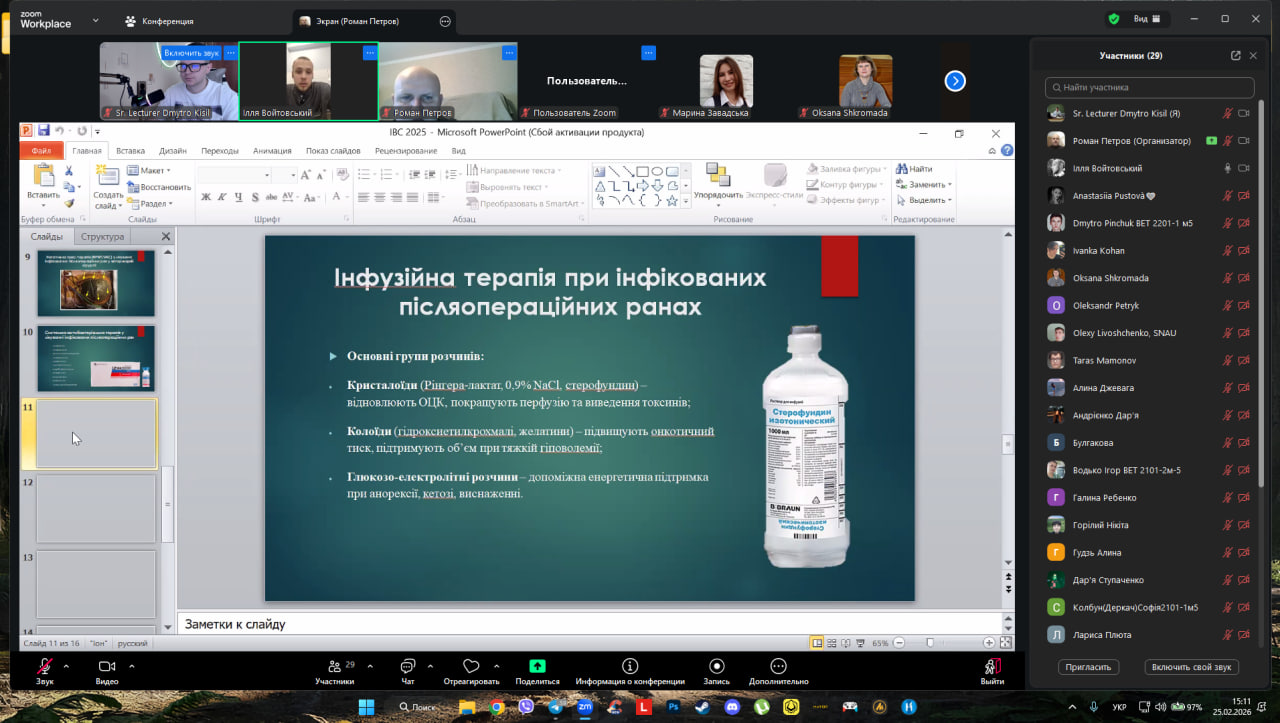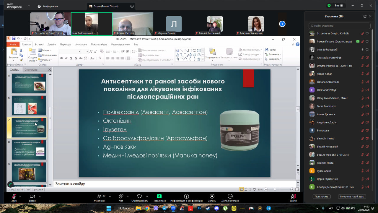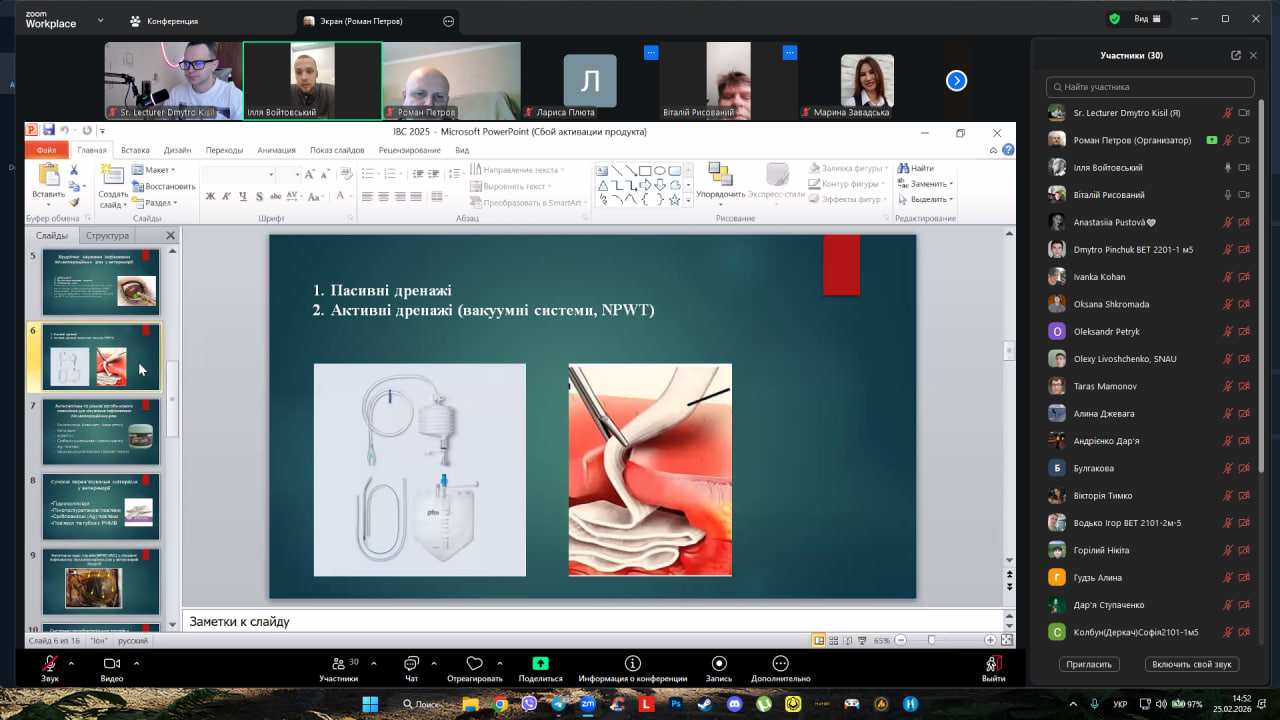 Під час заняття було ґрунтовно розглянуто сучасні підходи до профілактики ранової інфекції, алгоритми діагностики та лікування інфікованих ран, а також висвітлено практичні аспекти хірургічного втручання у дрібних домашніх тварин. Особливу увагу приділено доказовим підходам у ветеринарній медицині та аналізу клінічних випадків із практики.