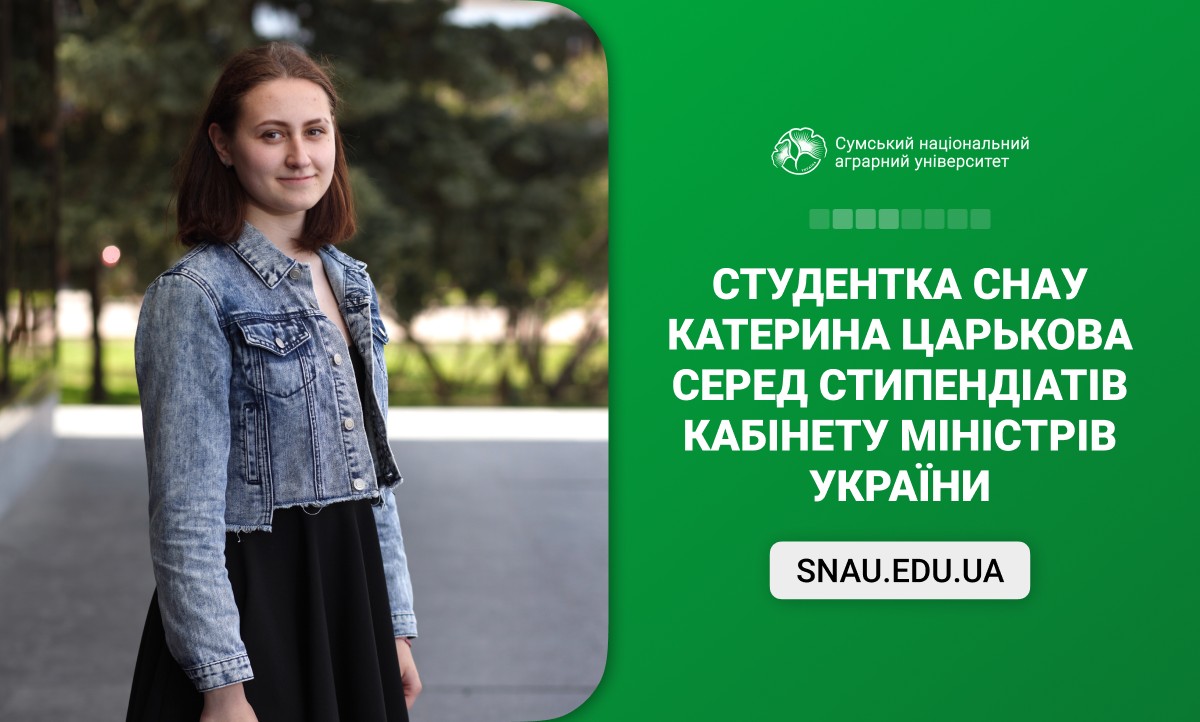 Студентка 3 курсу факультету ветеринарної медицини Сумського національного аграрного університету Катерина Царькова отримала іменну академічну стипендію Кабінету Міністрів України — одну з найпрестижніших державних відзнак для здобувачів вищої освіти.