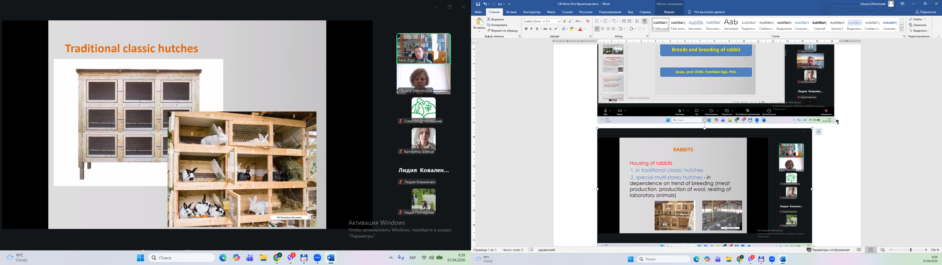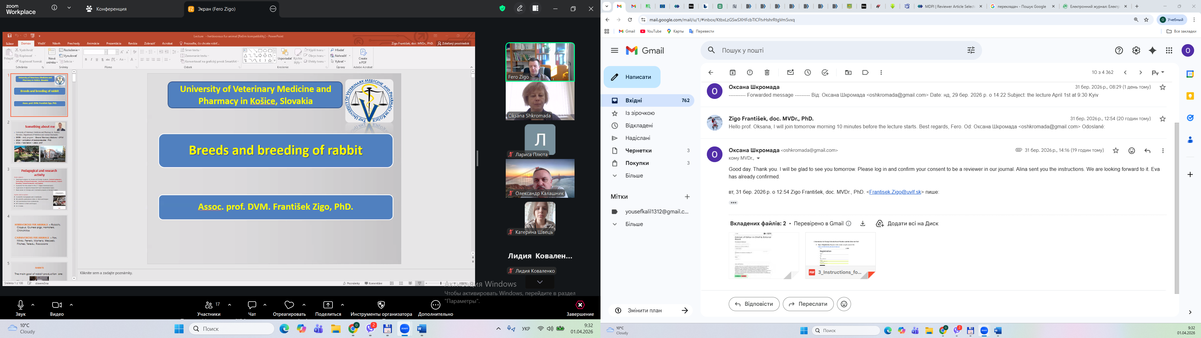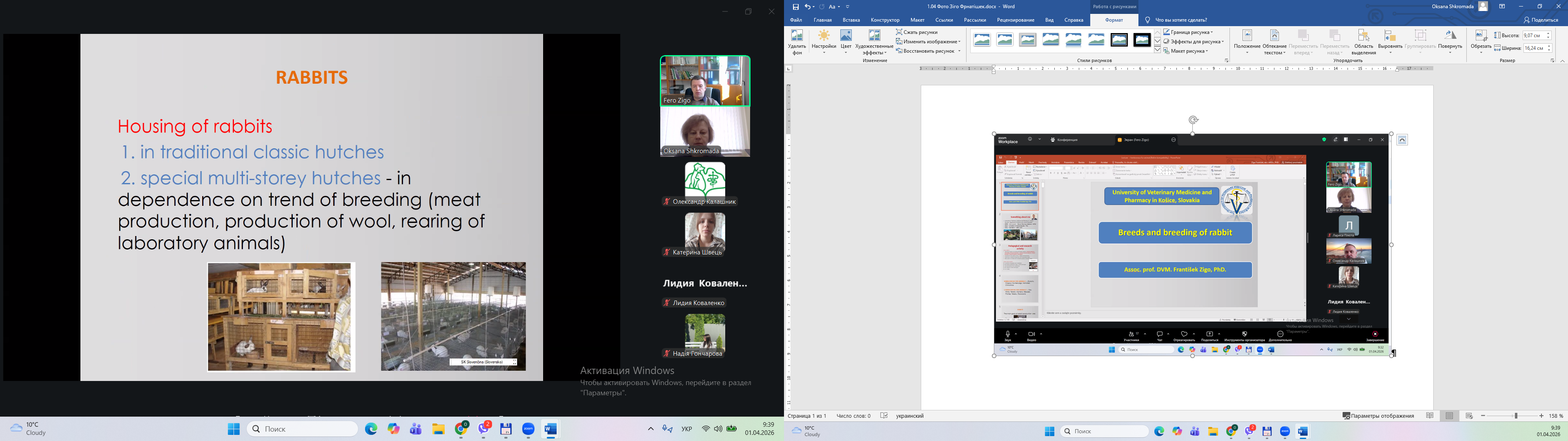 1 квітня 2026 року відбулася онлайн‑лекція «Breeds and breeding of rabbits» («Породи та розведення кроликів»), яку провів Франтішек Зіго (František Zigo), доктор філософії, доцент, ветеринарний лікар (DVM), співробітник кафедри харчування та тваринництва Університету ветеринарної медицини та фармації в Кошиці (Словаччина).