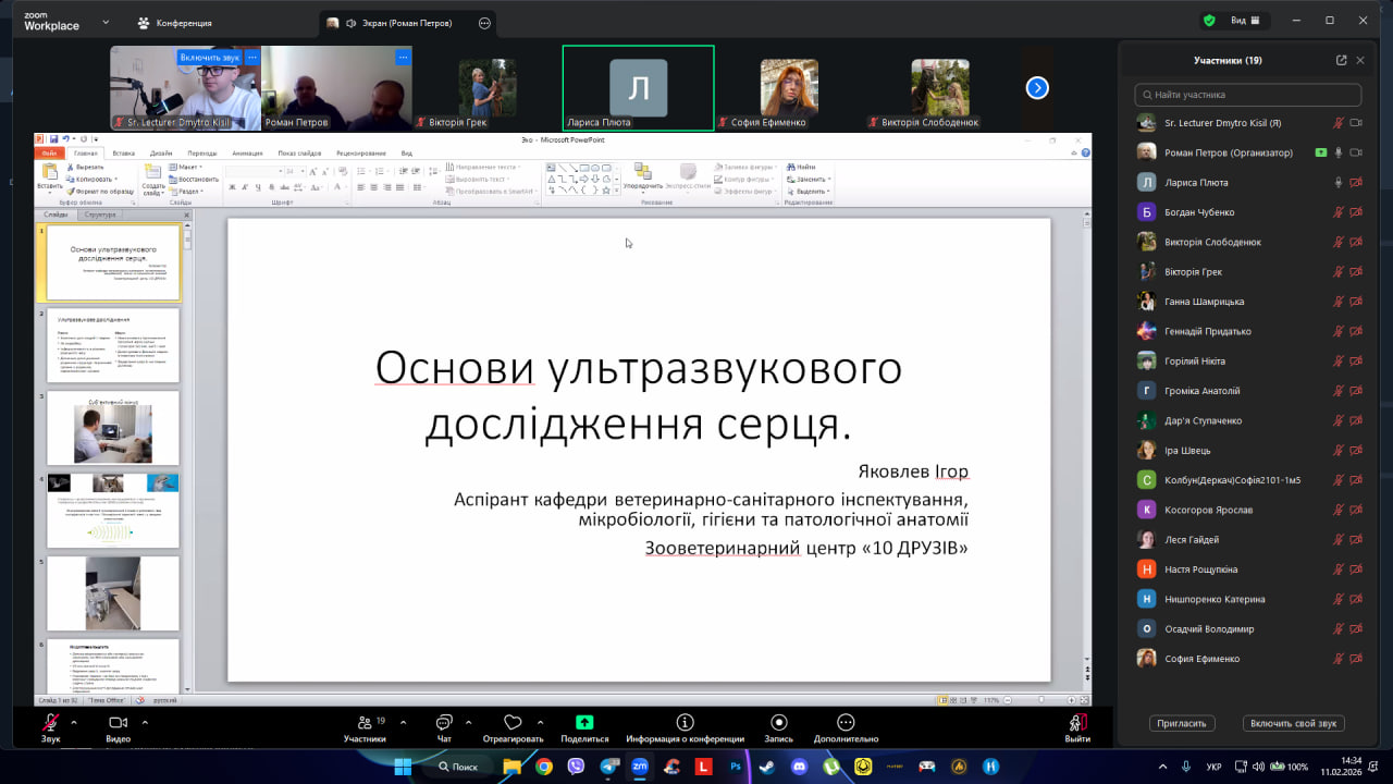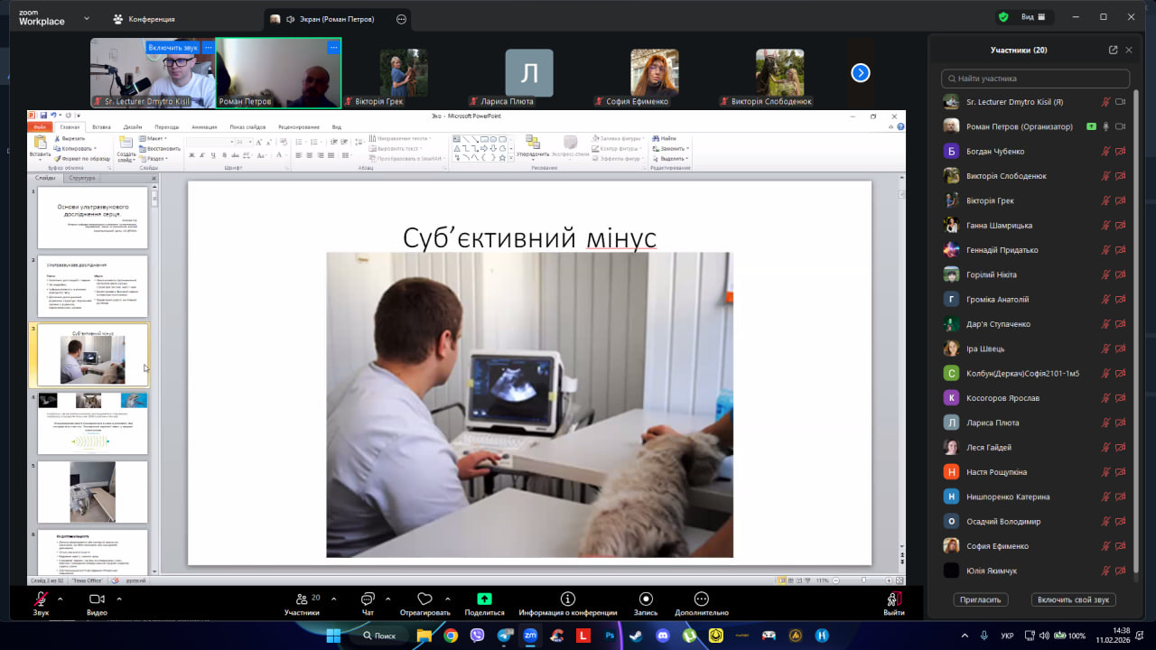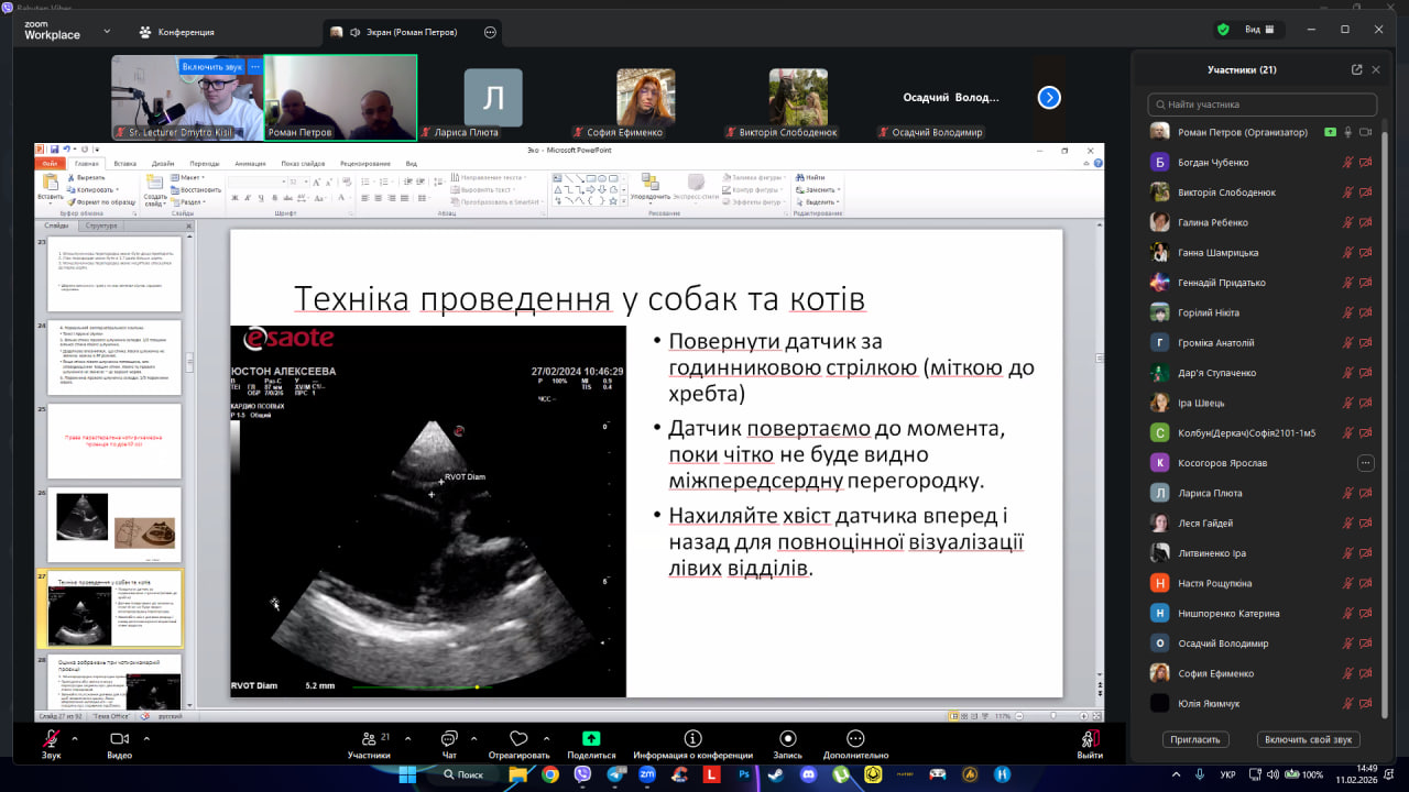 11 лютого 2026 року о 14:30 в межах проведення педагогічної практики відбулося заняття на тему «Ехокардіографія собак та котів».