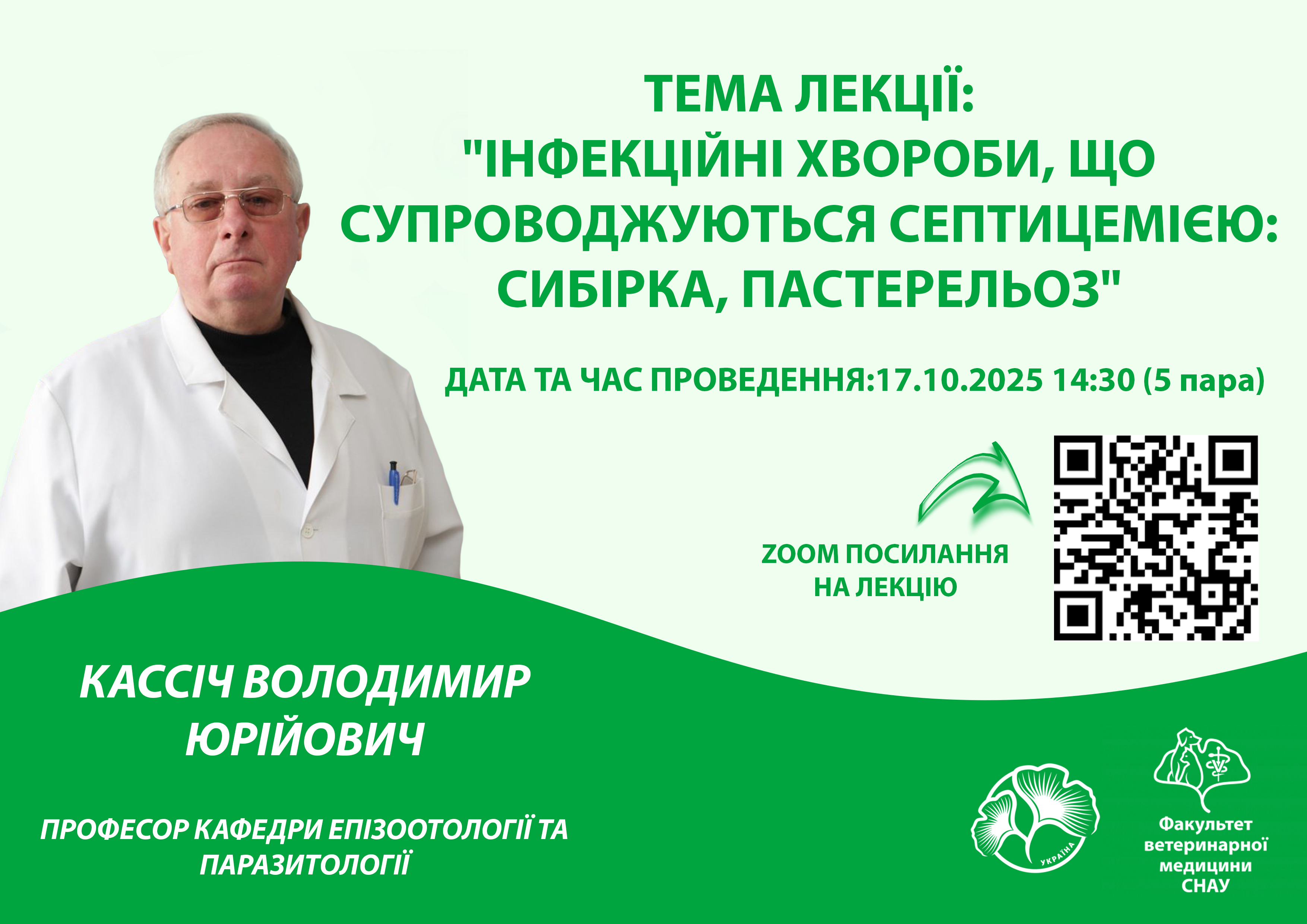 17 жовтня 2025 року о 14:30 (5 пара) на факультеті ветеринарної медицини Сумського національного аграрного університету відбудеться відкрита онлайн-лекція у форматі Zoom.